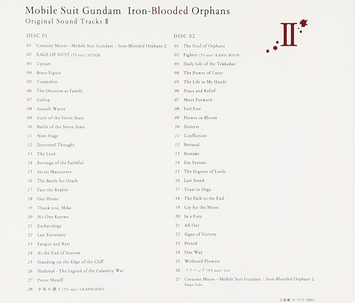 <img width="800" height="545" file="https://images-na.ssl-images-amazon.com/images/I/71%2BPn4KWdjL._SL1011_.jpg" border="0" alt="" ![图片[1]-[170402][高达铁血的奥尔芬斯OST原声集2]機動戦士ガンダム 鉄血のオルフェンズ オリジナルサウンドトラックII/音樂:横山克[320K]-ACG-二次元游戏动漫视频分享平台](http://img.acgacg.net/2023/09/1536979578405988582.jpg)